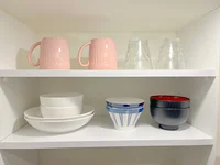座椅子・全身鏡・TVボード・リモコン立て・卓上ミラー・食器類・調理器具類・食器用洗剤・食器用スポンジ・ハンガー・パラソルハンガー ・ダストボックス・ティッシュペーパー・靴ベラ・照明・デジタル時計・テレビアンテナケーブル・延長コード・マットレス・バスマット・タオル(大・小) ・トイレットペーパー・トイレ用洗剤・バス用洗剤 ・シャンプー ・リンス・ ボディソープ ・トイレ用ブラシ ・トイレ用ダストボックス・ wifiルーター・ラグ