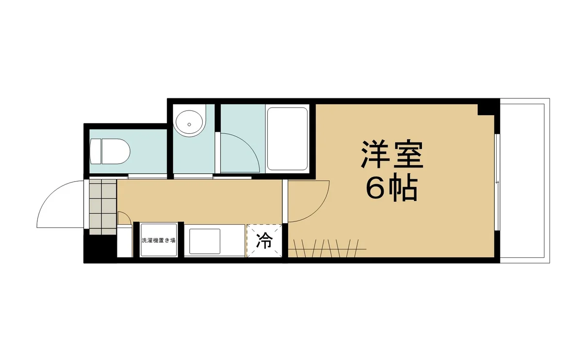 | 間取り | 1K 洋室6帖 キッチン バス・トイレ・洗面別 ベランダ | 利用可能人数 | 2名 |