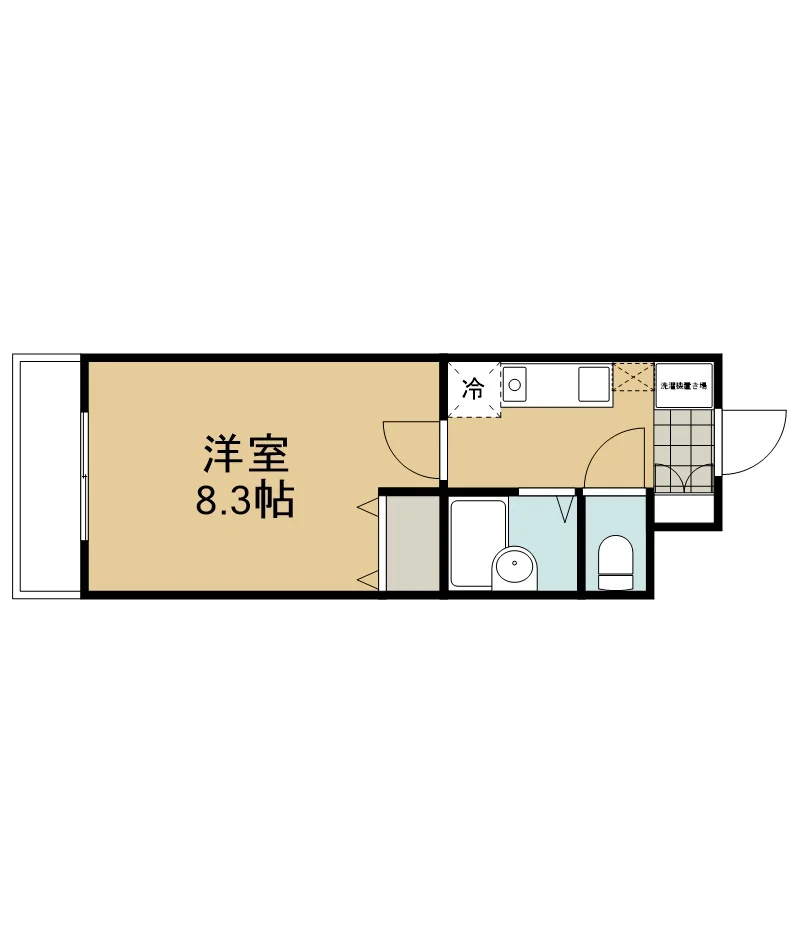 | 間取り | 1K 洋室8.3帖 キッチン バス・トイレ別 ベランダ | 利用可能人数 | 2名 |